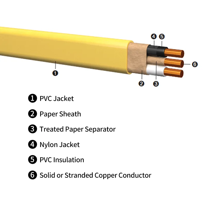 Sheathing Application: The bundled conductors are encased in a PVC Sheath via extrusion, forming the Nm-B cable. The sheath bonds to the insulation layers, creating a water-resistant seal.